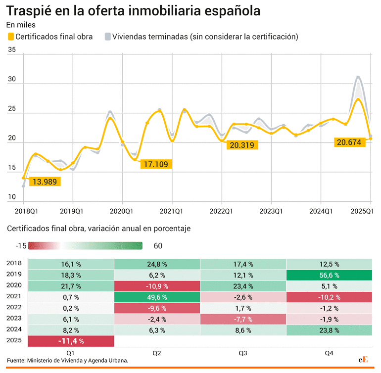 Construction ‘falters’: completed homes fall by 11.4%, exacerbating the lack of supply